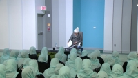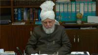 An educational class with the Head of the Ahmadiyya Muslim Community, Hazrat Mirza Masroor Ahmad (may Allah be his Helper) and Lajna members of the Waqfe Nau scheme.