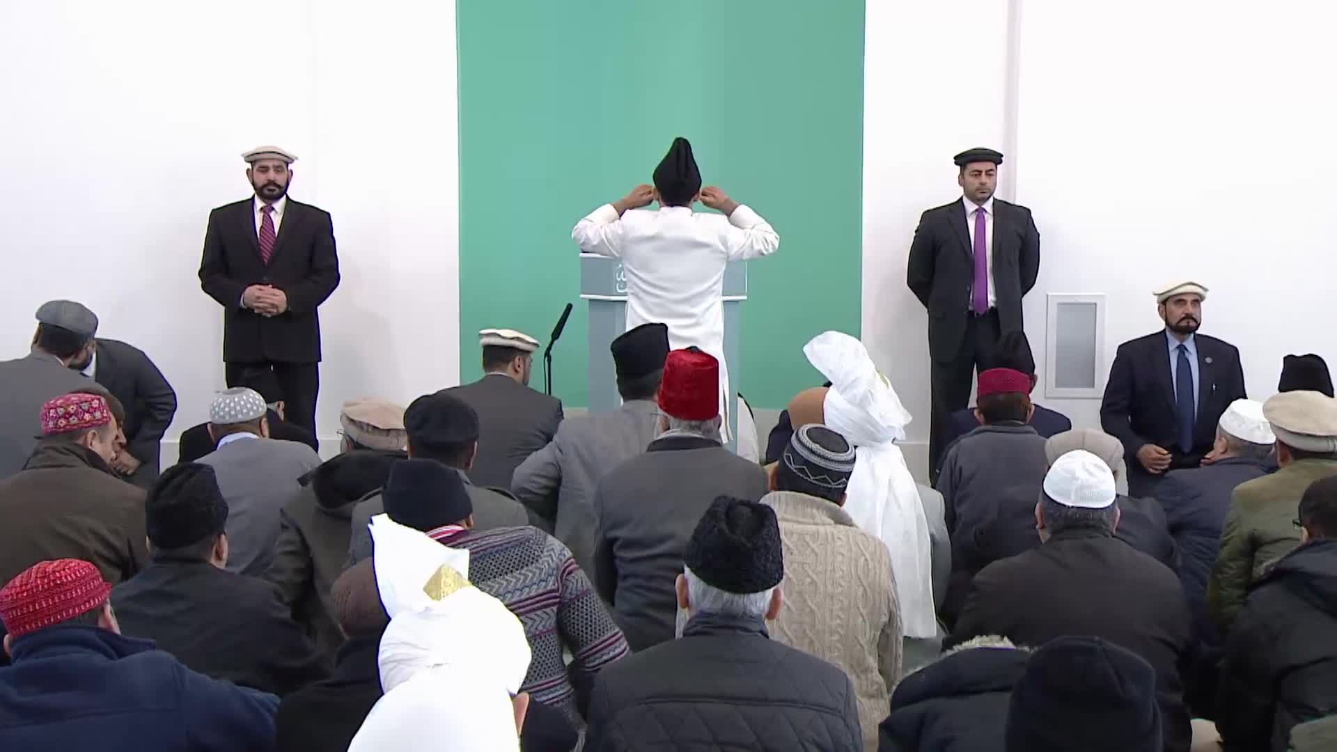 After greeting everyone with "Assalamo-Alaikum wa Rahmatullah" - peace be upon you and the Mercy of Allah - and bearing witness to the absolute Unity of Allah and that Muhammad is His Messenger and Servant, and seeking the protection of Allah against Satan, Huzur Aqdas (may Allah strengthen him with His Mighty Help) recited Sura Al-Fatiha, and then said that: