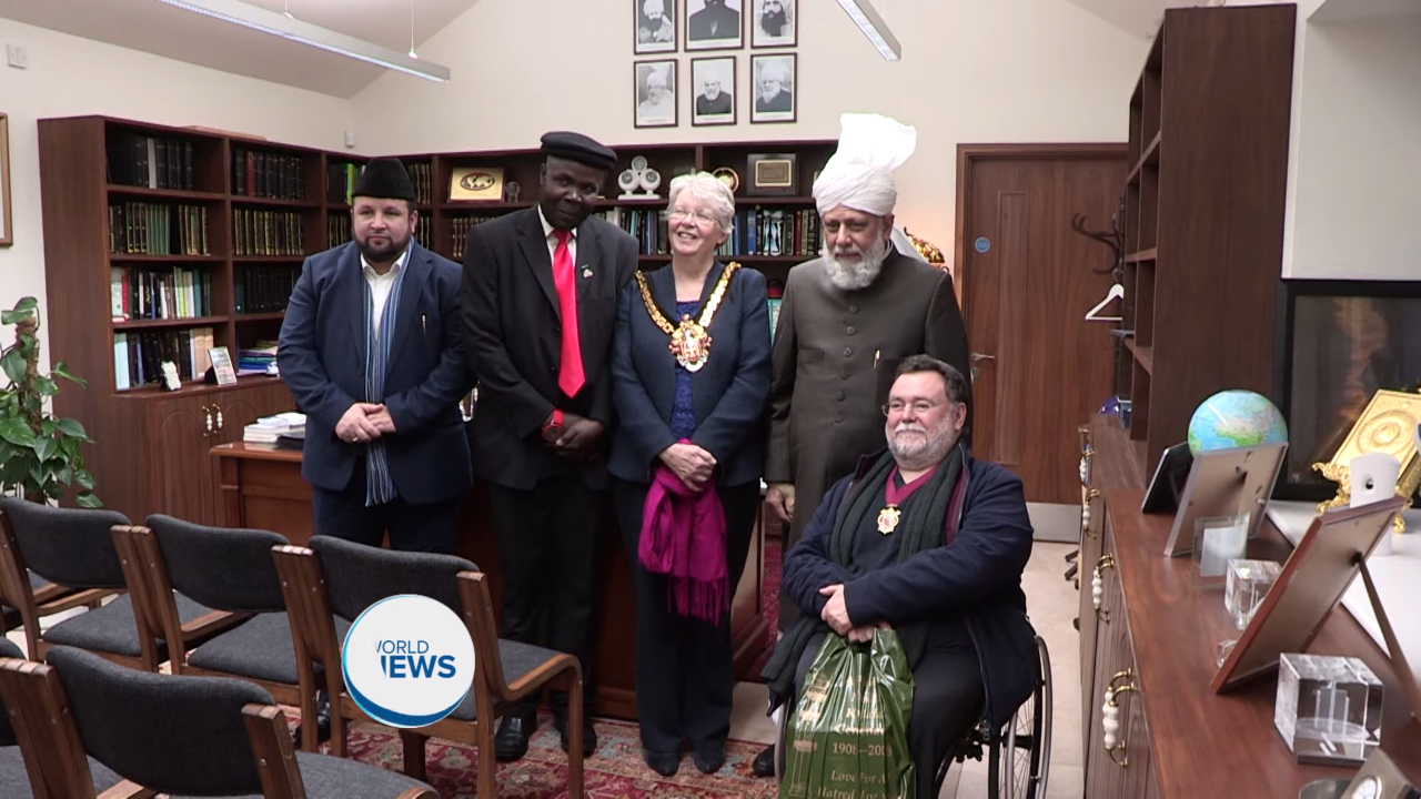 Huzoor (aba) grants an audience to Councillor Claire Darke, Mayor of Wolverhampton.